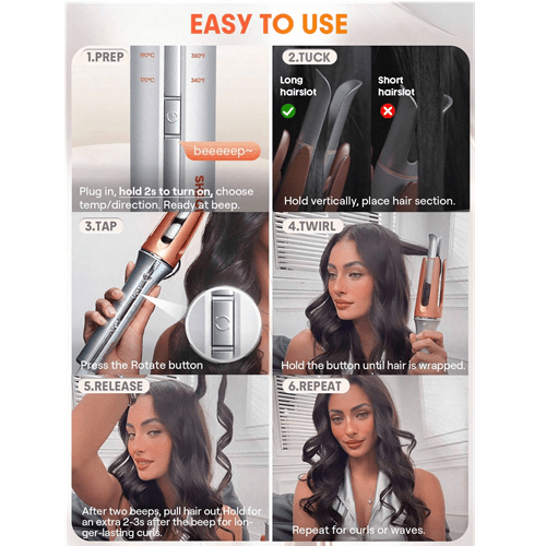 دستگاه کرلی فرکننده مو برند Sheglam دارای 3 گزینه دما (170 درجه سانتیگراد تا 210 درجه سانتیگراد) است که برای انواع مو مناسب می باشد. به همین دلیل، هر بار که از آن استفاده می کنید نتایج ایده آلی را تضمین می کند. این اتو فر کننده اتوماتیک همچنین عملکرد چرخش دو طرفه را ارائه می دهد. لذا به شما این امکان را می دهد که به راحتی جهت فرهای چپ و راست را تغییر دهید و به راحتی مدل موی مناسب برای موقعیت های مختلف ایجاد نمایید. استفاده از آن بسیار اسان و بدون نیاز به اعمال فشار است که برای مبتدیان عالی می باشد.