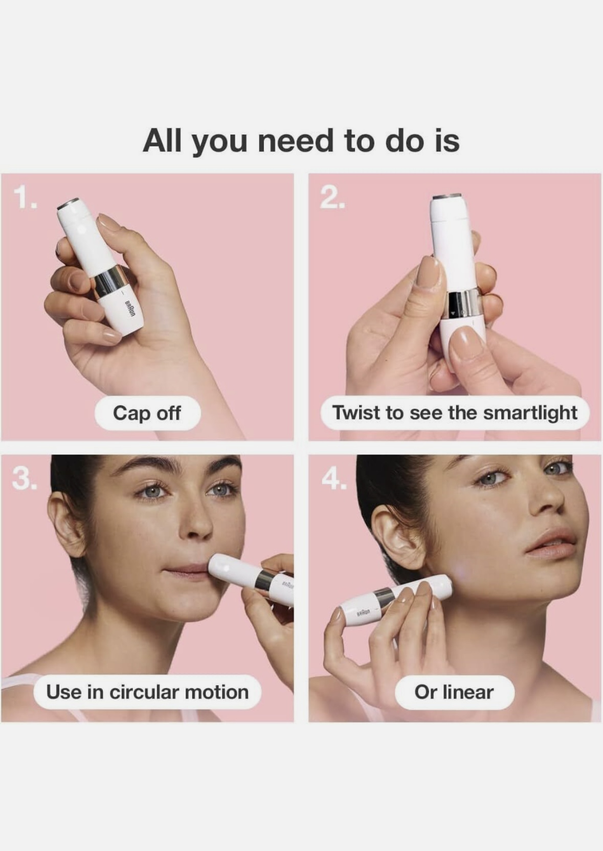 روی پوست تمیز و خشک، دستگاه رو بهآرامی روی نواحی مورد نظر حرکت بده. بعد از استفاده، برس تمیزکننده رو برای پاکسازی تیغهها بهکار ببر.
